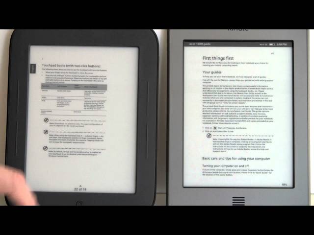A comparison between the Nook Simple Touch and the Amazon Kindle Touch. These two ebook readers have 6" Pearl E Ink touch screens, and WiFi with access to on-device bookstores. Check out our detailed write-up of the comparison: http://www.mobiletechreview.com/ubbthreads/showflat.php?Number=41718